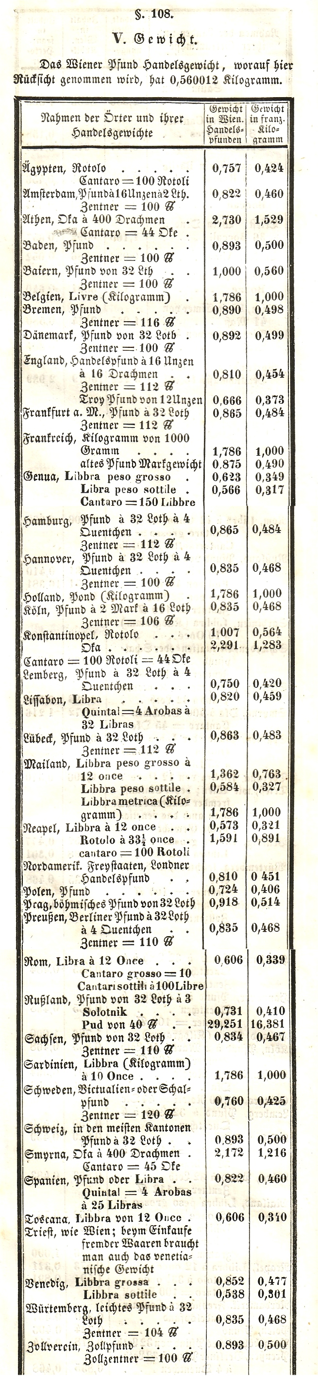 Various historic pounds from a German textbook dated 1848